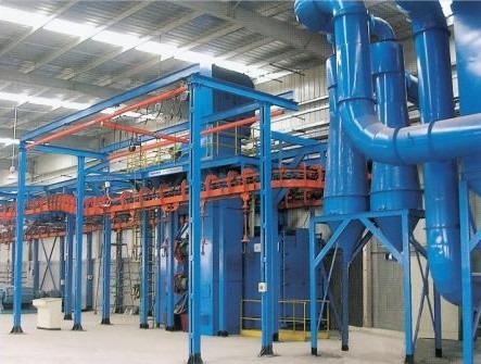 3.懸鏈式拋丸機在工件隨吊鏈可連續(xù)運行或步進運行,可實現(xiàn)停止狀態(tài)下定點裝卸工作,定點拋丸清理;