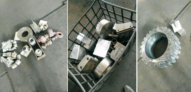 鑄造件是最需要拋丸機產品的行業,無論是壓鑄還是鍛鑄件的表面清理、除銹、去除氧化皮以及拋丸強化工藝,特別適用拋丸機進行表面清理。針對大型鑄件如閥門、船用配件,可采用大型吊鉤式或臺車式拋丸機進行去氧化皮工作。